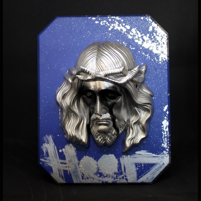 15×20 cm. Spray paint on wood & metal.