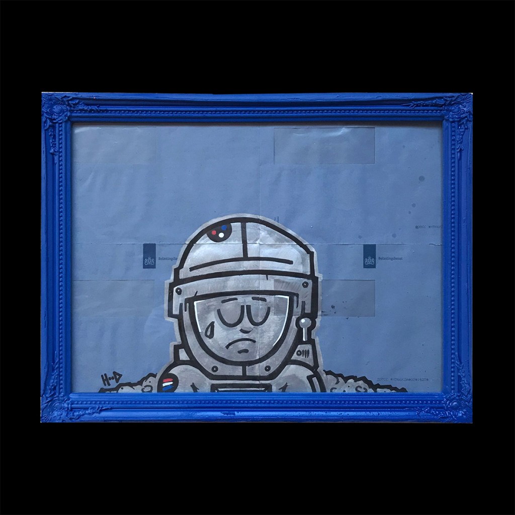 Sad Astronaut in Holland Posted on 28 november 2021 by Hoodkitsch Sad Astronaut in Holland – For Sale.34×44 cm. Marker on Tax Agency envelopes.GO TO STORE