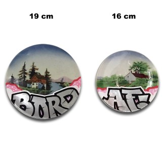 19 & 16 cm. Marker on ceramic plates.