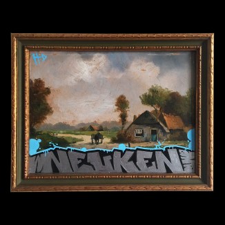 32×42 cm. Marker and spray paint on oil.