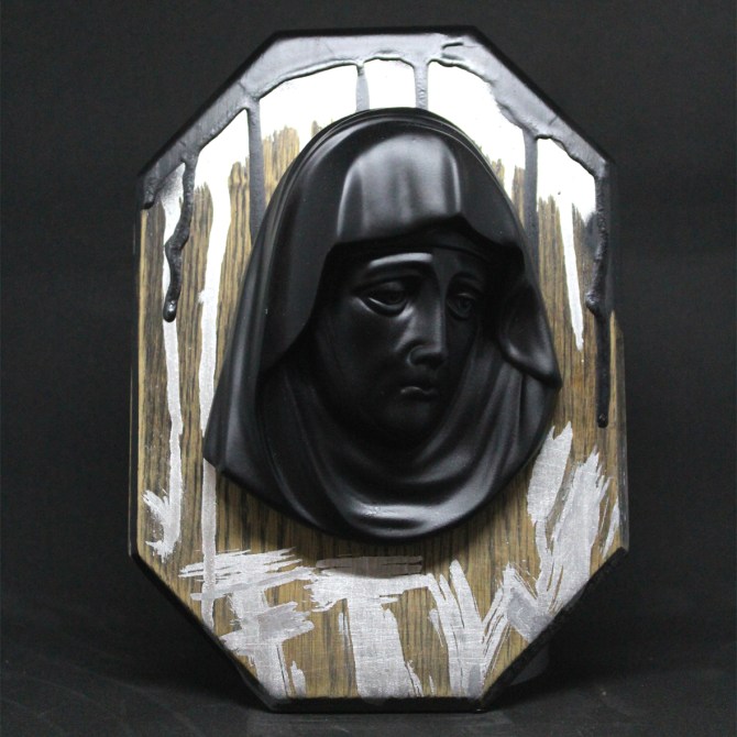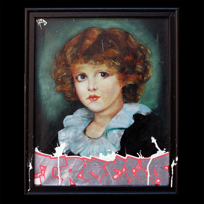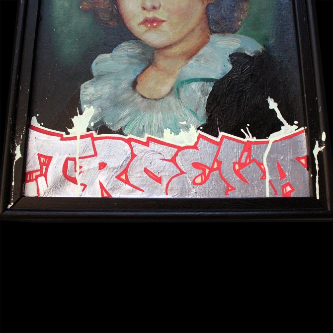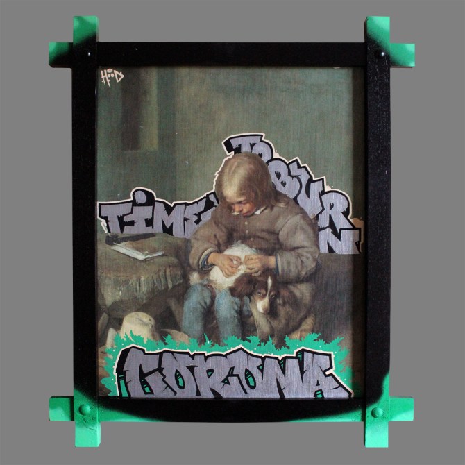 18×23 cm. Spray paint on wood & metal.