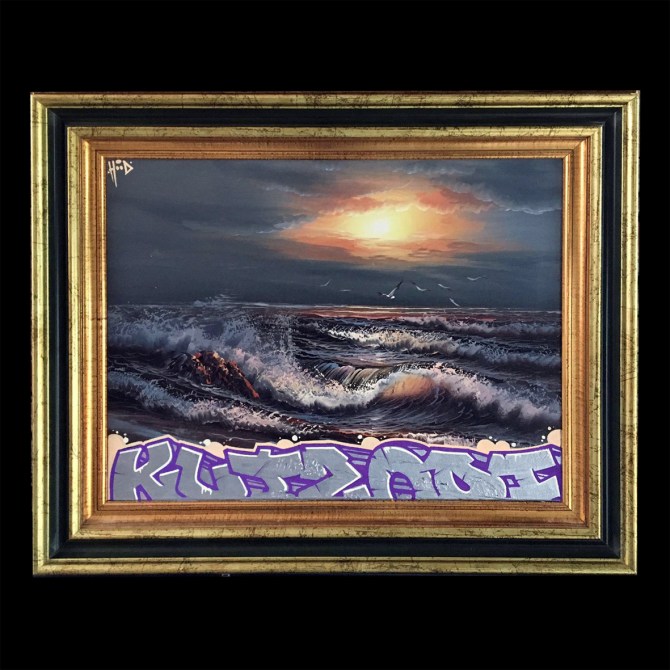 56×76 cm. Marker and spray paint on oil.