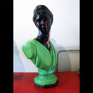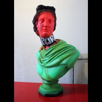 Marker and spray paint on plaster statues.