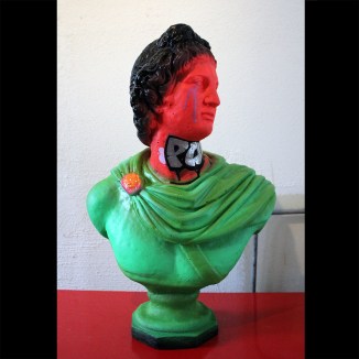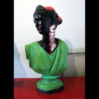 Marker and spray paint on plaster statues.