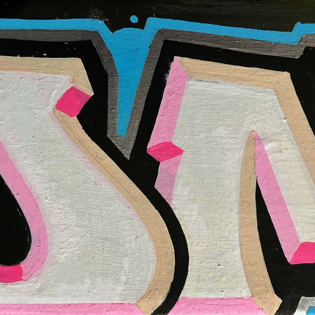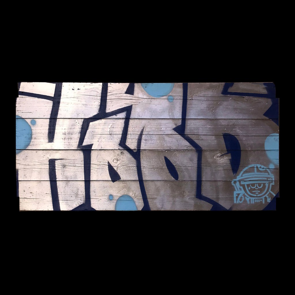 100×47 cm. Spray paint on wooden panel.