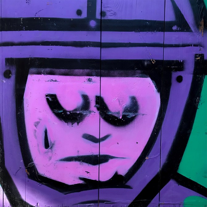 68×62 cm. Marker and spray paint on reclaimed oil painting.